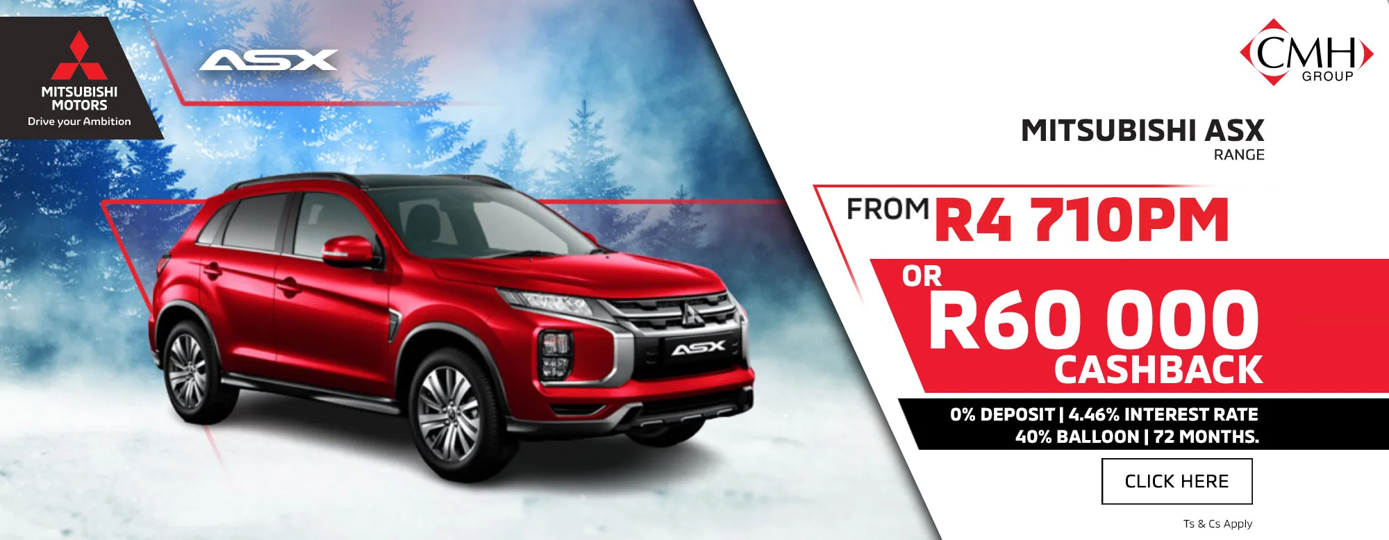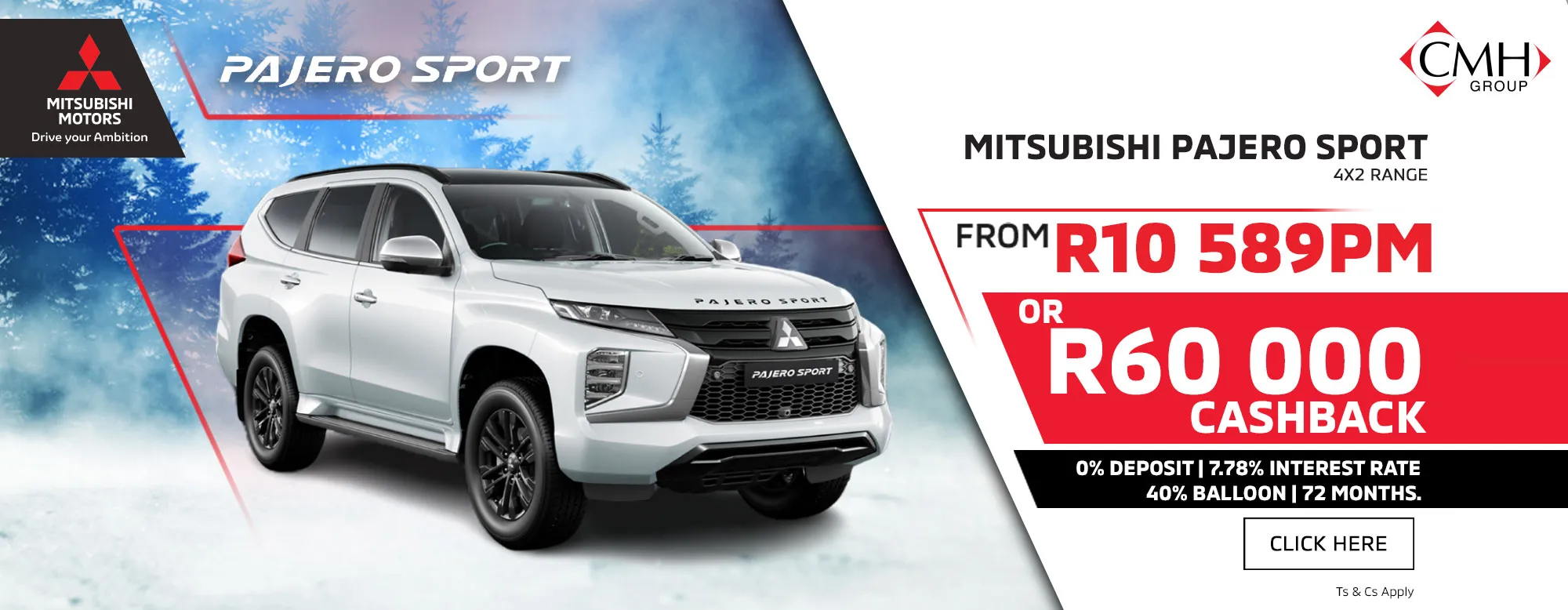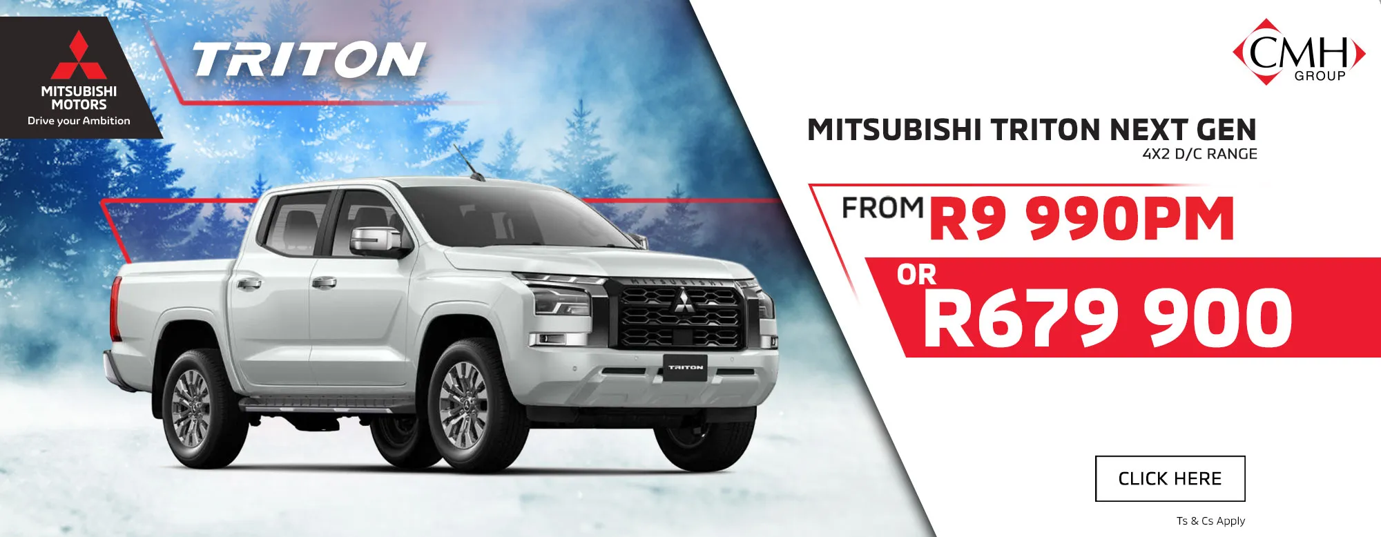 Home Dream Big. Drive bigger With our range of head turners ASX From R409 990 Take Me There Eclipse Cross From R524 990 Take Me There Next Gen Triton From R479 990 Take Me There Outlander From R709 995 Take Me There Outlander Sport From R429 990 Take Me There Pajero Sport From R789 990 Take Me There Triton From R474 995 Take Me There Xpander From R365 995 Take Me There Let your Mitsubishi find you Build What type of experience do you need? SUV Bakkies Crossover Selected : Seats How many seats do you need? Selected : Environment Where do you usually drive your car? Selected : ASX From R409 990 View Showroom Eclipse Cross From R524 990 View Showroom Next Gen Triton From R479 990 View Showroom Outlander From R709 995 View Showroom Outlander Sport From R429 990 View Showroom Pajero Sport From R789 990 View Showroom Triton From R474 995 View Showroom Xpander From R365 995 View Showroom Already a Mitsubishi Owner? Specials Pre-owned Book a Service